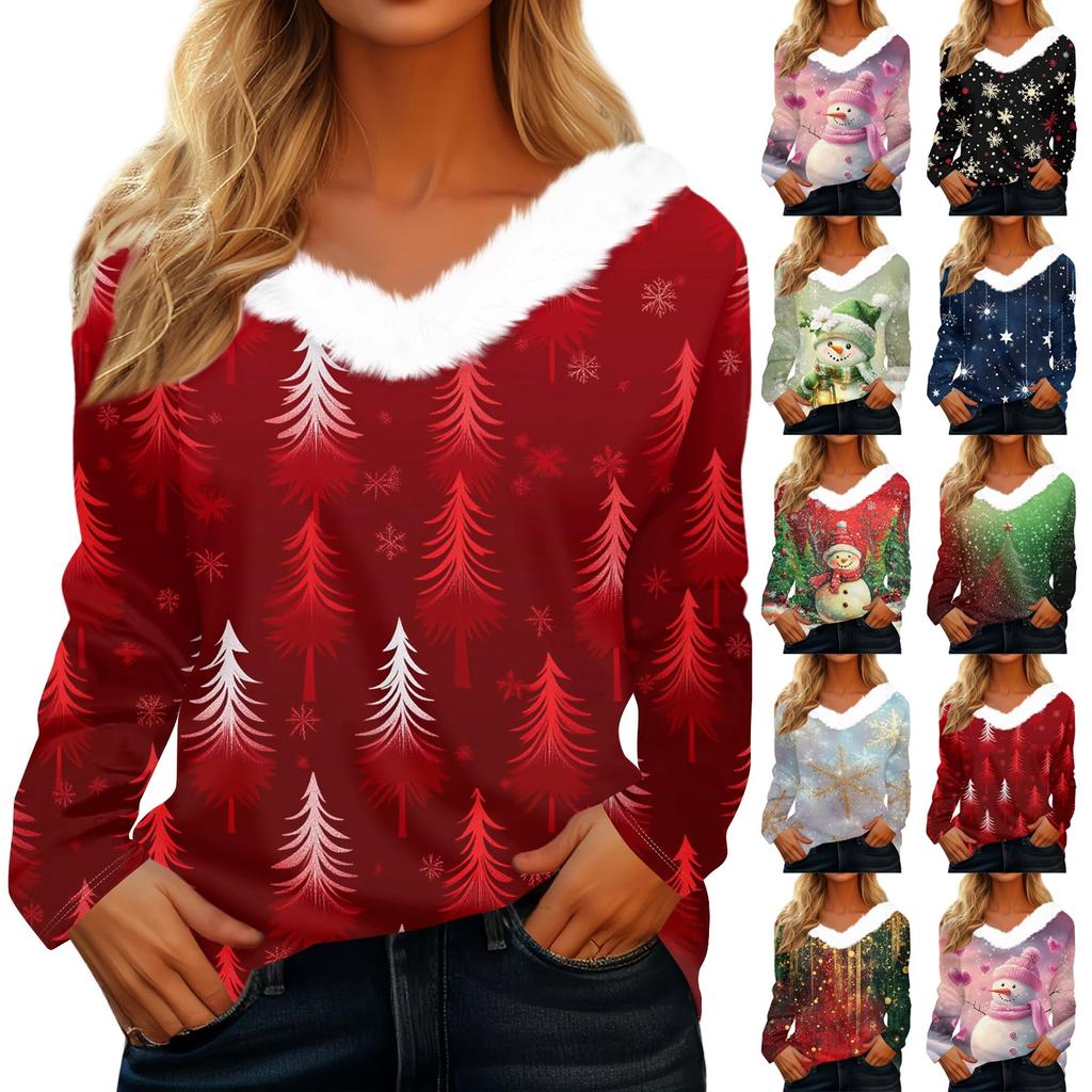 Рубашки с длинным рукавом для женщин Милые топы Рождественские принты Футболки Блузки Повседневные топы больших размеров Базовые топы Пуловеры