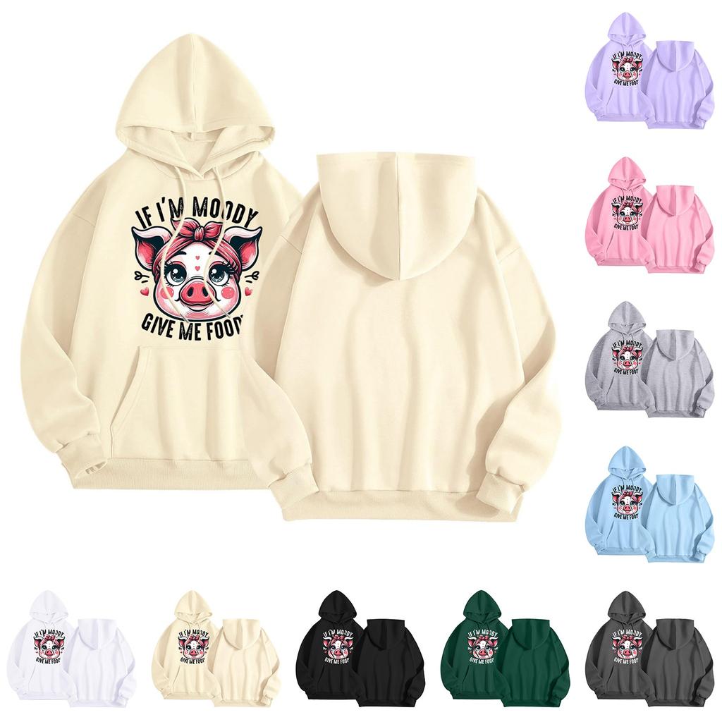 Женская мода легкий длинный рукав пуловер толстовки с капюшоном с карманами графическая толстовка