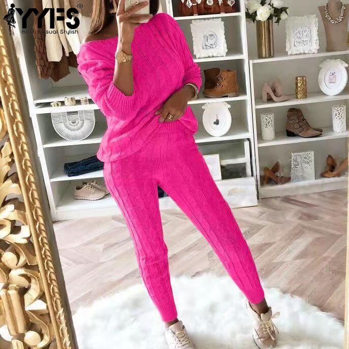 YYFS Женская мода Повседневная Осень Зима Однотонный Принт Длинный Рукав О-Образный Вырез Топы Женская Одежда Шерстяной Трикотаж Свитера и Брюки Костюмы — купить товар онлайн с бесплатной доставкой по всему миру!