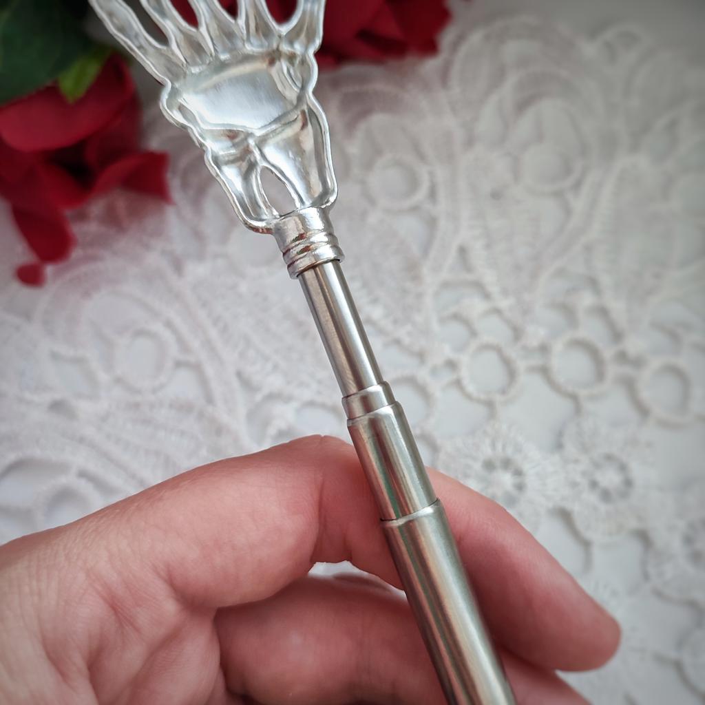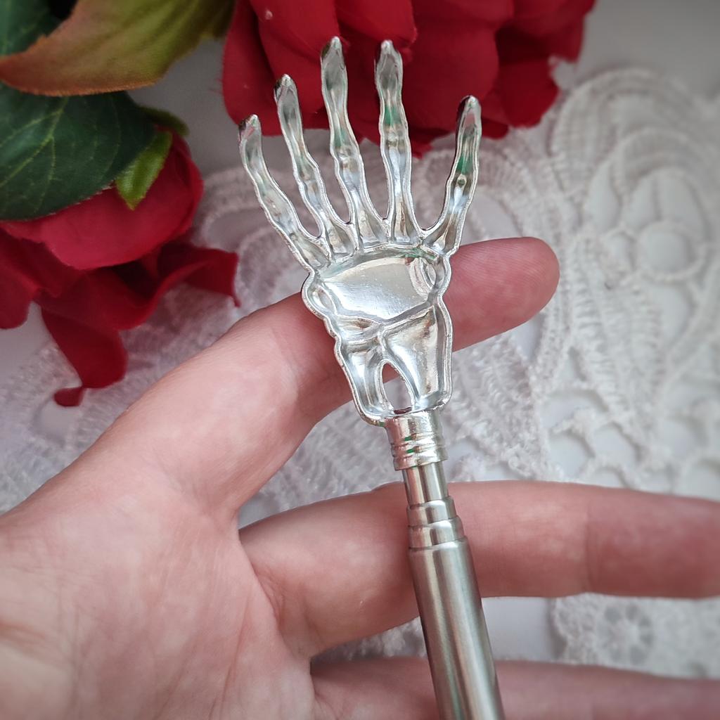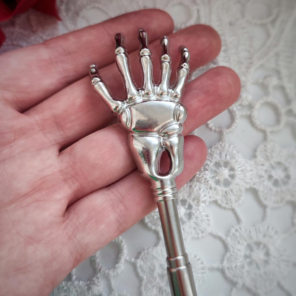 ПАЛКА-ЧЕСАЛКА - рука скелета: забавный и эффективный помощник! Этот чесальный массажёр - отличное решение для тех, кто хочет избавиться от зуда и при этом получить дозу забавного стиля! Что мне понравилось: • Оригинальный дизайн: Чесалка в виде руки скелета - это очень необычно и весело! • Телескопическая конструкция: Чесалка раздвигается с 22 см до 58 см, что делает ее удобной для доступа к любой части тела. • Качество: Изготовлена из нержавеющей стали, типо прочная и долговечная. Первую мой ребенок всё же смог сломать треснув ей по полу😝. • Противоскользящая рукоять: Приятно держать в руках, не скользит. • Разнообразие цветов: Можно выбрать рукоять под свой вкус, смотрите по ссылке товара. Недостатки: • Материал: Нержавеющая сталь может быть холодной на ощупь. Но в тоже время быстро согревается. Вывод: Эта чесалка - отличный выбор для тех, кто ищет забавный и эффективный инструмент для устранения зуда. Она компактна, прочная и стильная. Советы: • Используйте чесалку с осторожностью, чтобы не поцарапать кожу. • Храните чесалку в сухом месте, чтобы предотвратить коррозию. • Поделитесь своей забавной чесалкой с друзьями и подарите им немного позитива! Всем добра и любви 😘