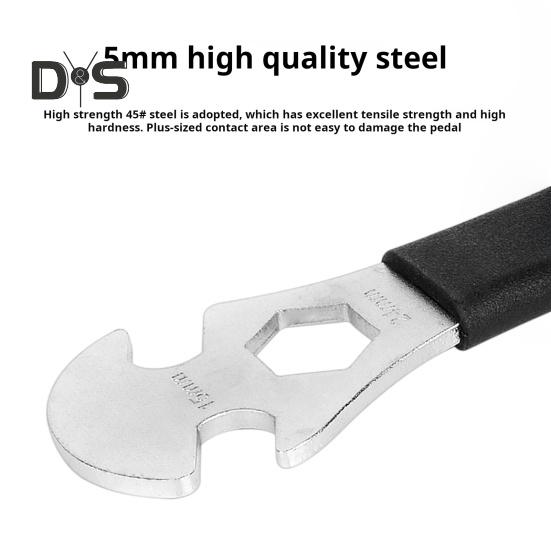 Благодаря увеличенной площади контакта и закалке этот ключ обеспечивает превосходную прочность и устойчивость к повреждениям.. Улучшите свои ощущения от езды на велосипеде с помощью гаечного ключа для педалей велосипеда!