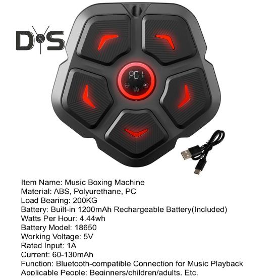 Bluetooth-совместимое соединение и синхронизация музыки: Легко подключайте свой смартфон через Bluetooth для воспроизведения персонализированной музыки во время тренировок по боксу.. Испытайте синхронизированные световые эффекты на мишенях, которые пульсируют в ритме музыки, превращая тренировку в увлекательный и захватывающий процесс.