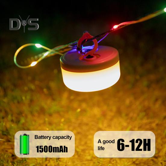 Длительное время автономной работы: Этот уличный тентовый светильник, оснащенный аккумулятором большой емкости 1500 мАч, обеспечивает длительное освещение на протяжении всей ночи и поддерживает быструю зарядку через интерфейс Type-C.