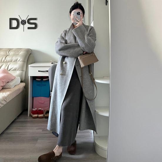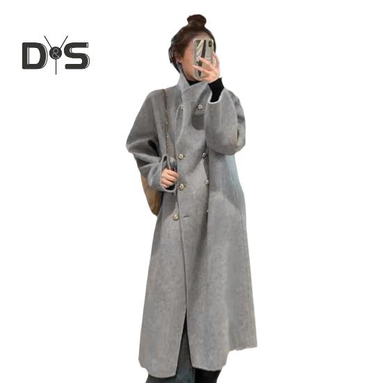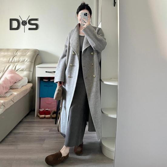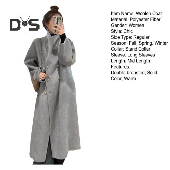 Элегантный двубортный дизайн: Подчеркните свой стиль с помощью этого однотонного длинного женского пальто с изысканным двубортным дизайном на пуговицах, которое воплощает элегантность и вневременную модную привлекательность.