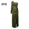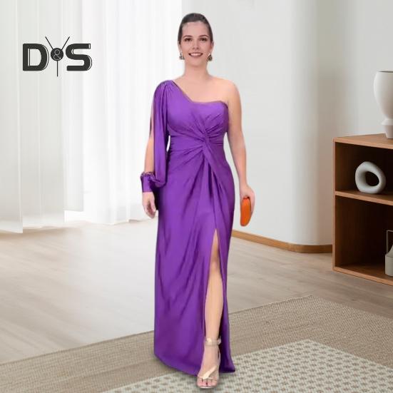 Это женское платье, изготовленное из высококачественного 100% полиэфирного волокна, имеет гладкую атласную поверхность, которая излучает изысканность.. Модель на одно плечо с высоким разрезом добавляет элегантности и очарования общему образу.