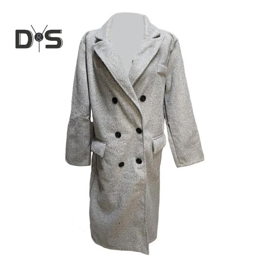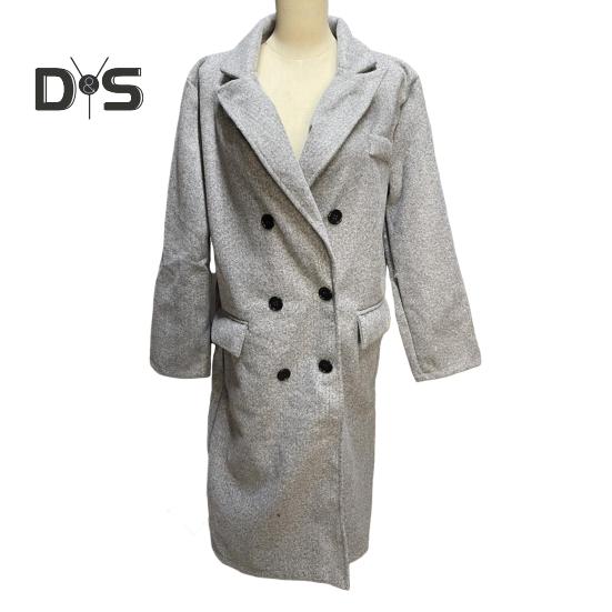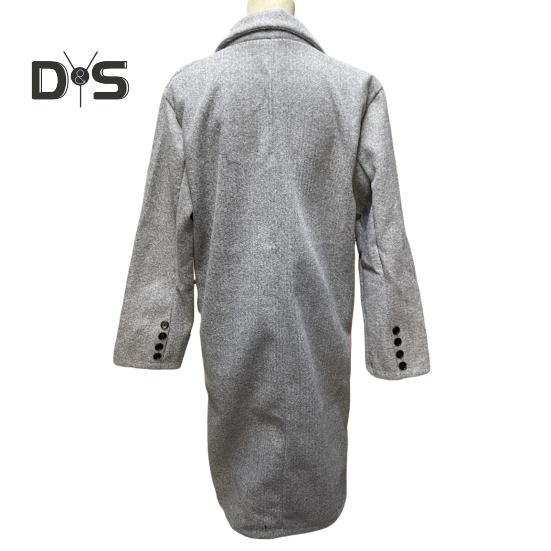 Элегантный дизайн: Ощутите изысканность этого однотонного длинного женского пальто с пуговицами на лацканах, которое без труда воплощает элегантность и модный стиль.