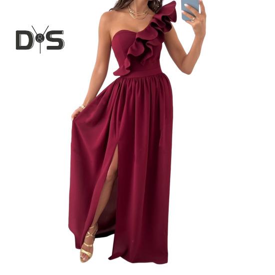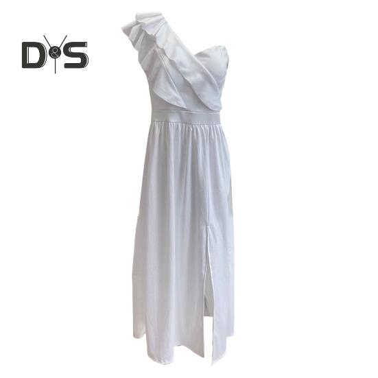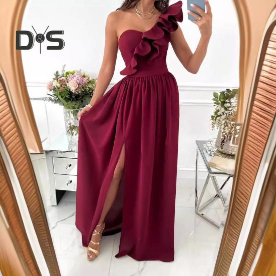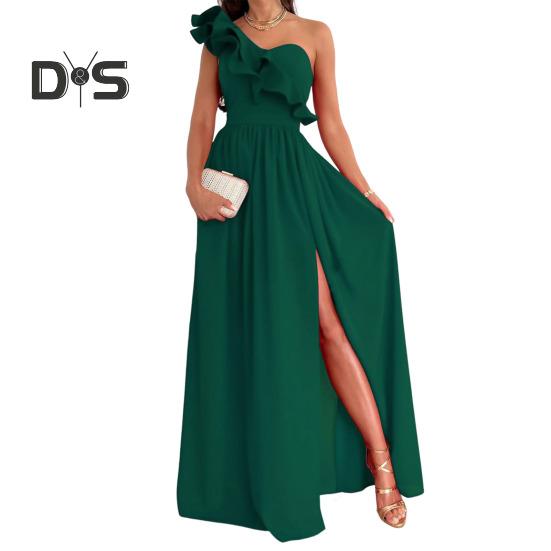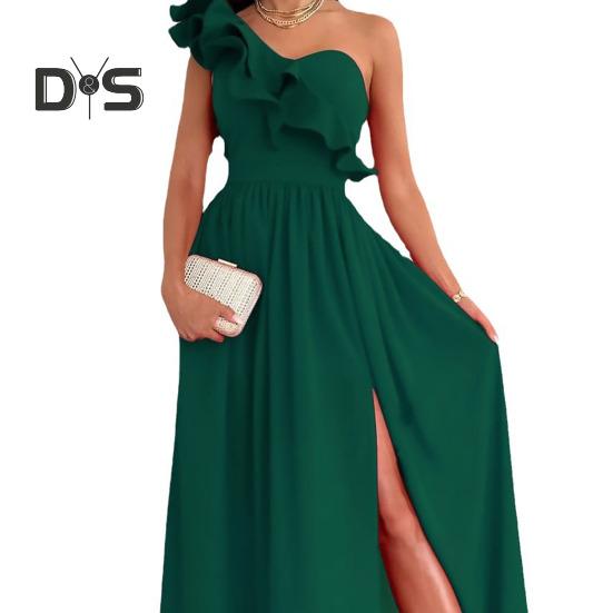 Это элегантное платье — универсальная вещь, подходящая для различных случаев, включая вечерние вечеринки, свадьбы, коктейльные вечеринки и свидания.. Простой, но изысканный дизайн позволяет легко сочетать его с высокими каблуками, ожерельями и сумочками, создавая очаровательный и элегантный образ.. Это платье без рукавов с открытыми плечами, с оборками и разрезом по подолу излучает стиль и изящество..