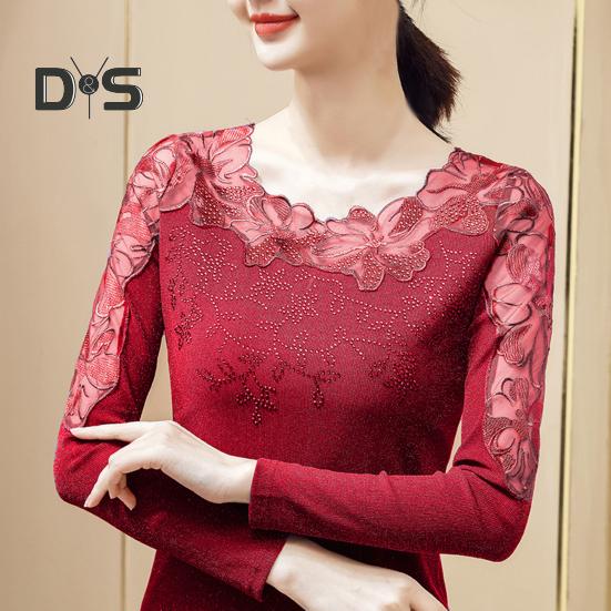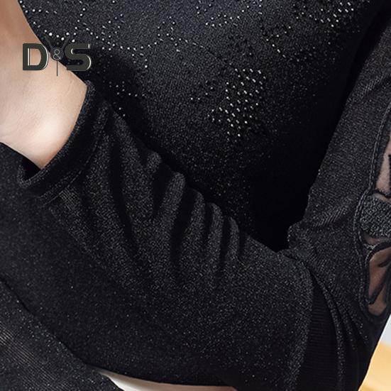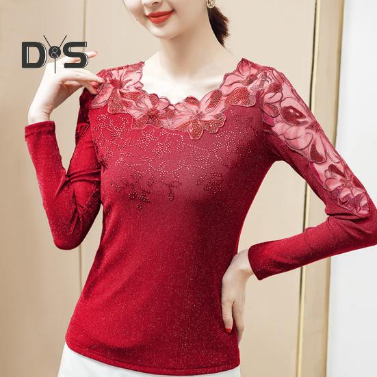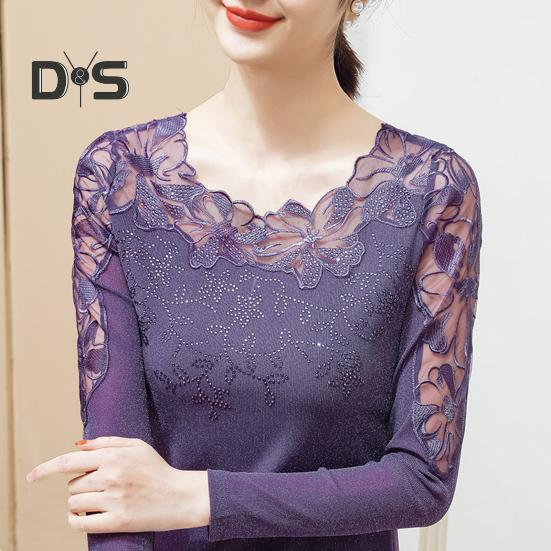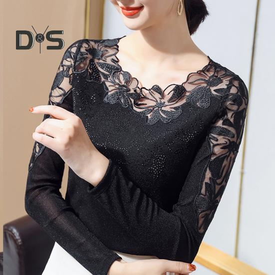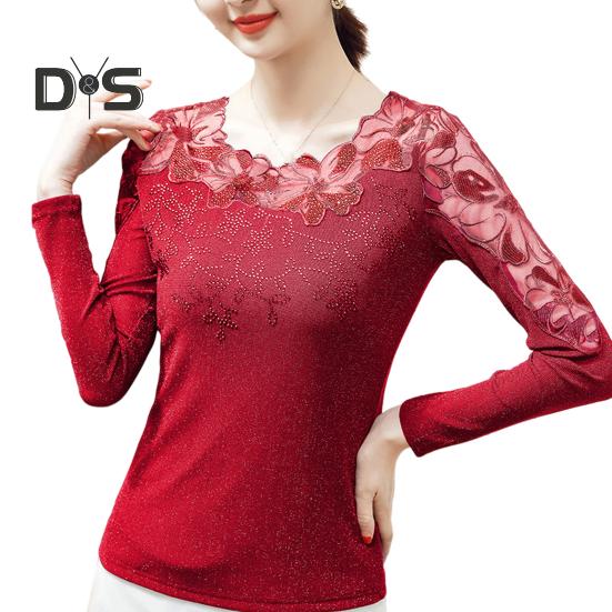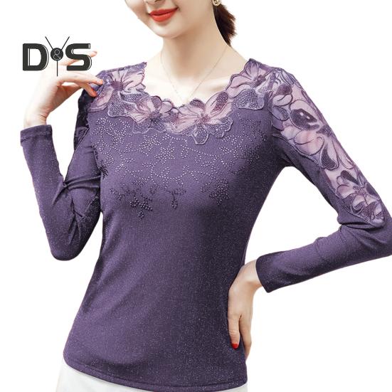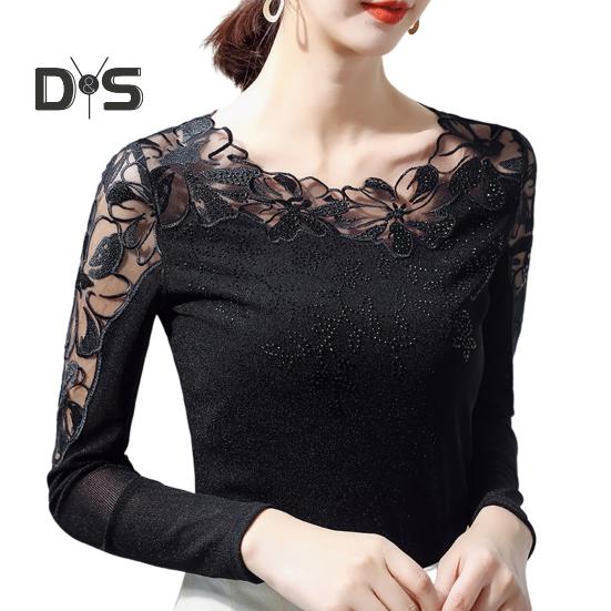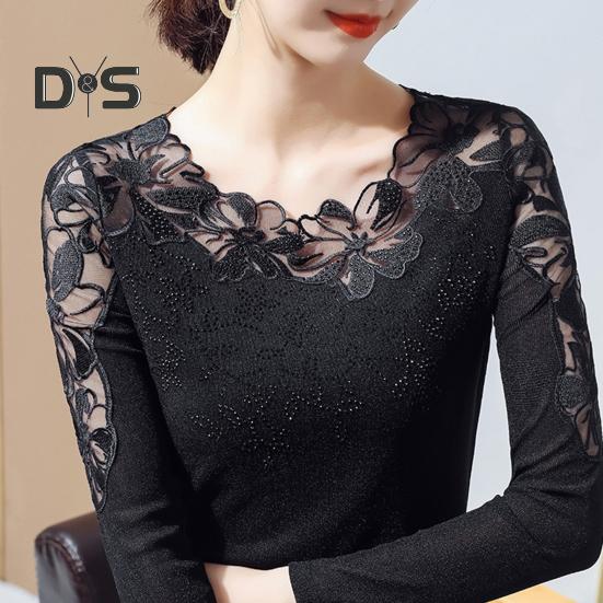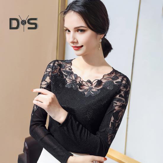 Элегантная отделка сетчатым кружевом: Подчеркните свой стиль с помощью изысканной вышивки из сетчатого кружева, украшающей вырез этого топа с длинными рукавами.. Изысканная отделка добавляет нотку изысканности, делая его идеальным как для повседневных выходов, так и для официальных мероприятий.