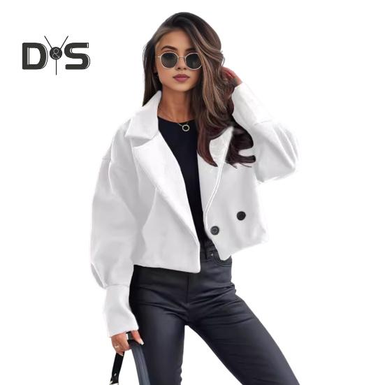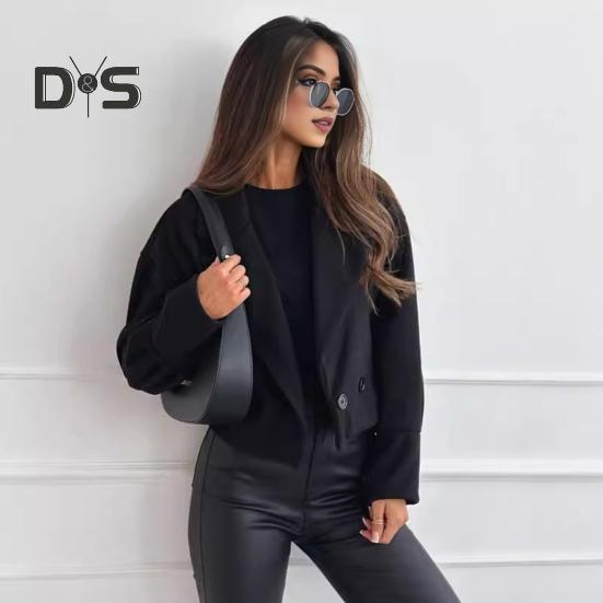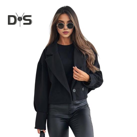 Это стильное короткое пальто имеет повседневный кардиганный дизайн с двумя пуговицами для удобства надевания.. Воротник с лацканами и длинные рукава придают модный штрих однотонному короткому жакету.. Универсальный и элегантный, его можно легко сочетать с майками, свитерами или футболками, а также с любимыми низами для создания шикарного образа..