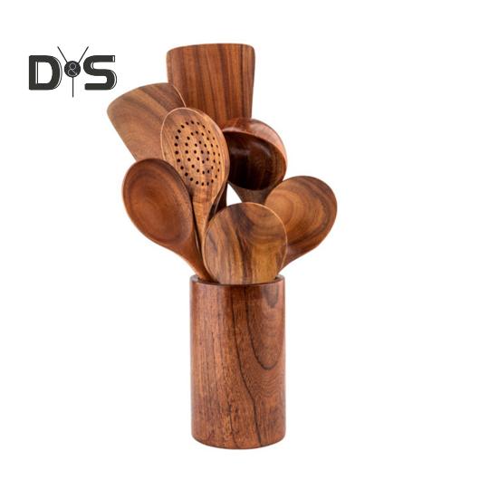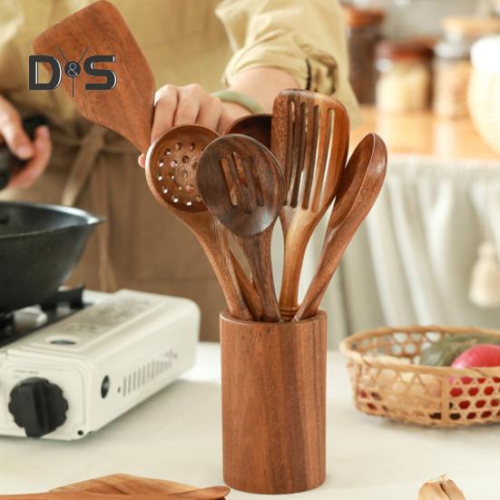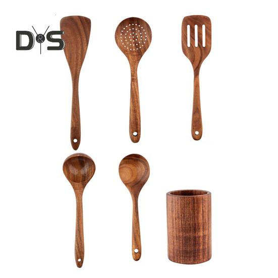 5/6 шт. Набор деревянных кухонных принадлежностей с антипригарным покрытием, кухонные принадлежности с держателем, удобная ручка, набор лопаток, прочный деревянный эргономичный дизайн, кухонные инструменты для легкого