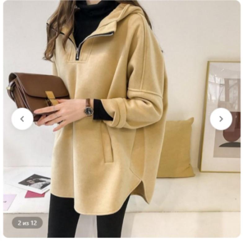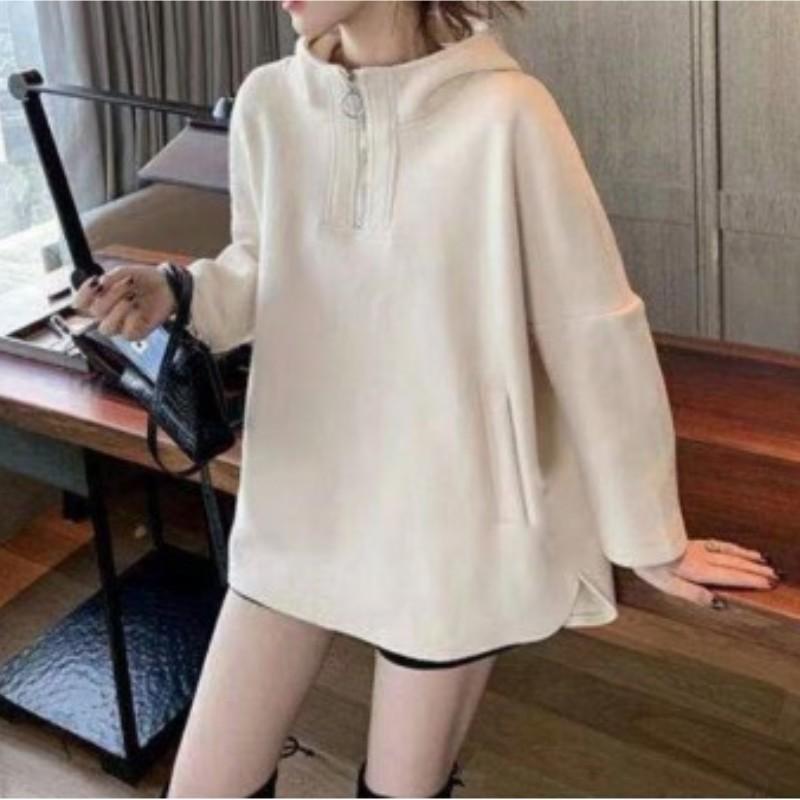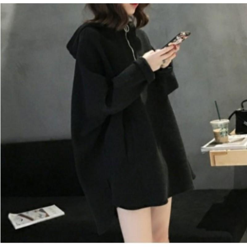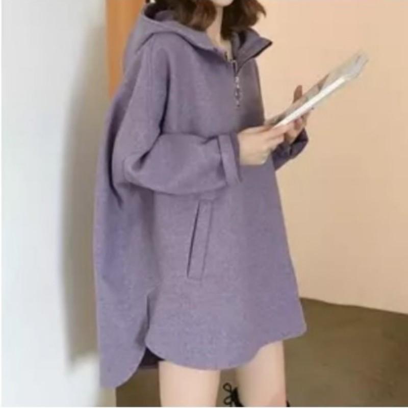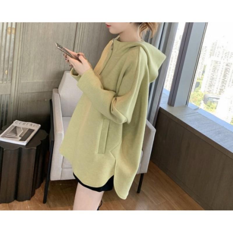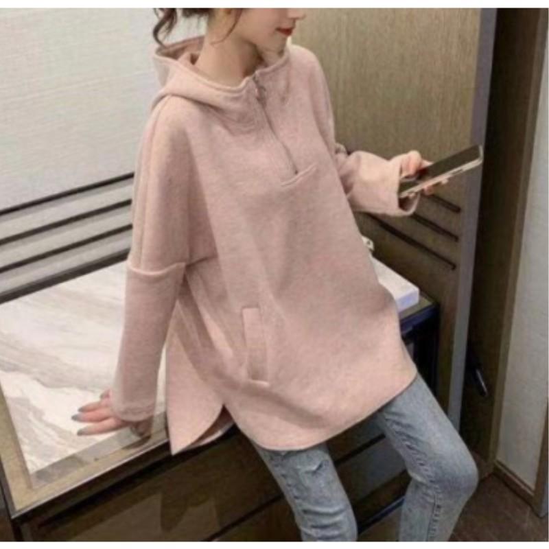 Женская свободная толстовка средней длины с капюшоном, однотонная, с длинными рукавами, полузастегивающаяся на молнию, на осень и зиму
