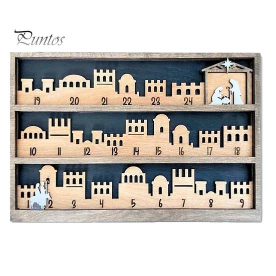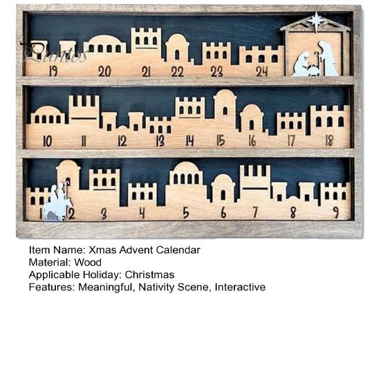 Отсчитывайте дни до Рождества стильно с нашим многофункциональным рождественским адвент-календарем. Это прекрасно оформленное украшение не только добавит очаровательного штриха в интерьер вашего дома, но и послужит значимым напоминанием об истинном духе Рождества.. Календарь посвящен религиозной теме и изображает путешествие Марии и Иосифа в Вифлеем, кульминацией которого становится трогательная сцена Рождества Христова.