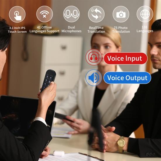 Переводчик оснащен микрофоном с функцией шумоподавления и высококачественными динамиками, что обеспечивает чистый звук и точную передачу речи в шумной обстановке.. Благодаря поддержке более 138 языков, офлайн-переводу в 17 странах и 75 фотопереводам это устройство идеально подходит для путешествий, изучения языка и деловых поездок.