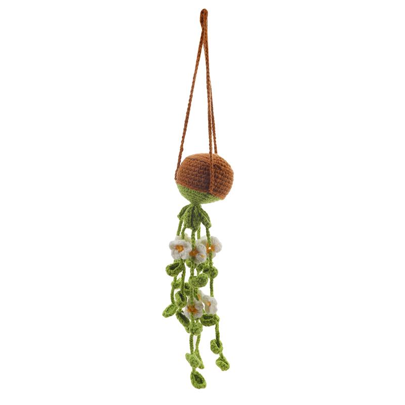 Подвеска для зеркала заднего вида автомобиля, вязаная крючком корзина для цветов, горшечное растение, подвесное украшение, украшение для интерьера автомобиля