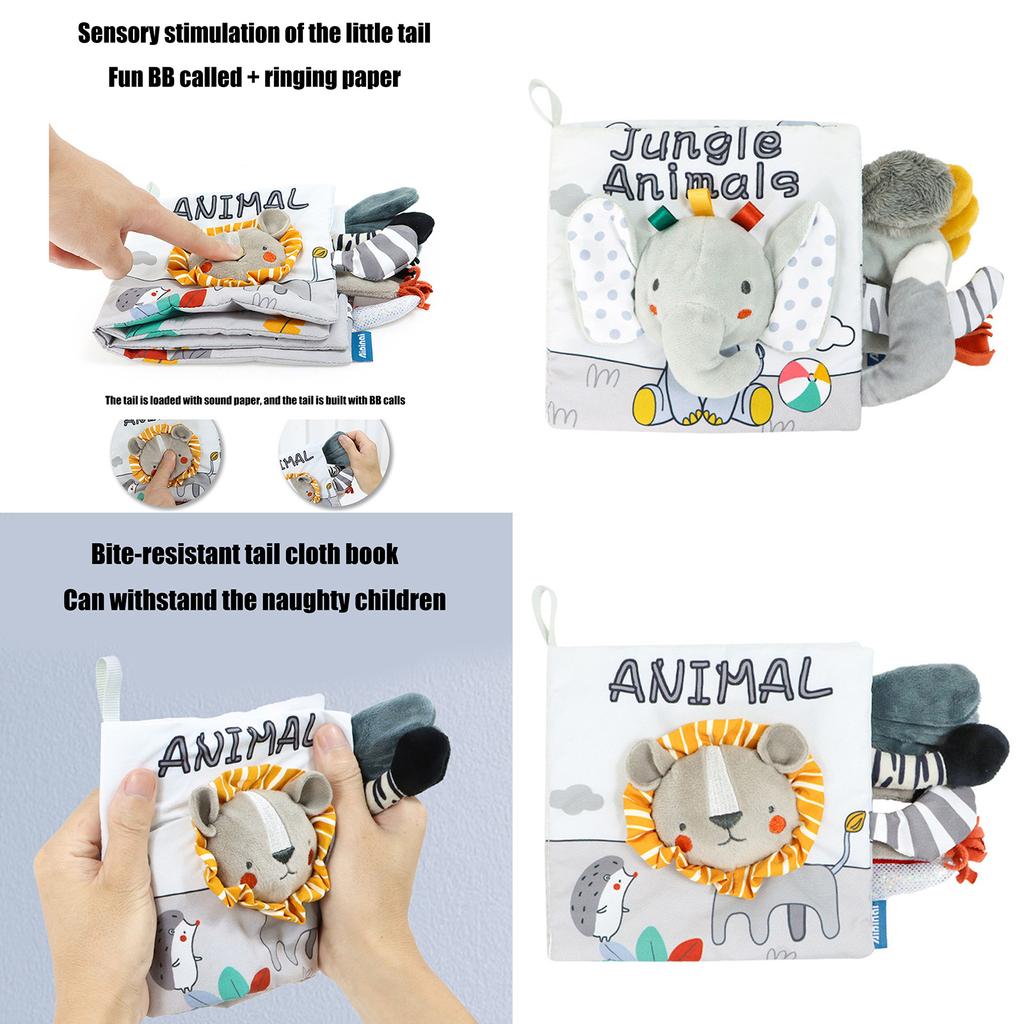 Детская развивающая книга Интерактивная развивающая мелкую моторику Книга-мешковатая книга для раннего обучения детей Тканевая книга Книга с хвостами животных