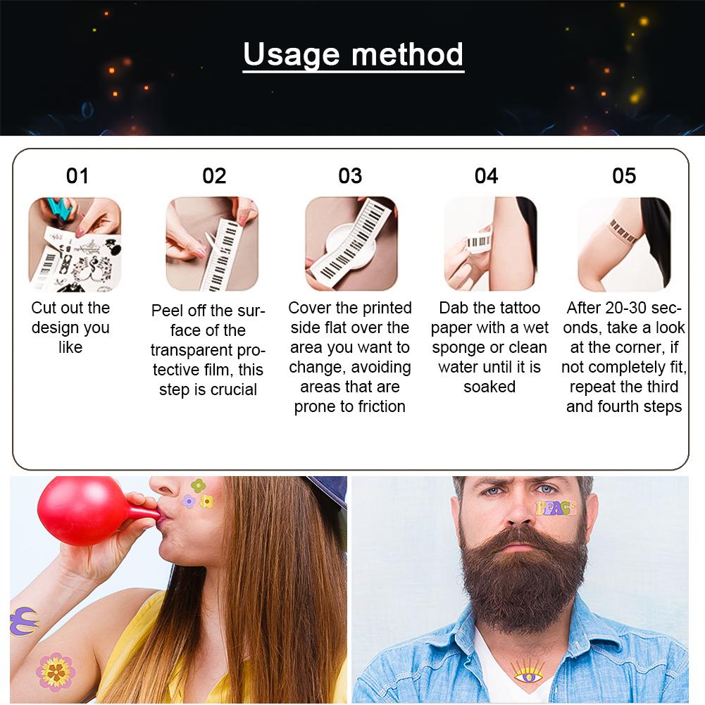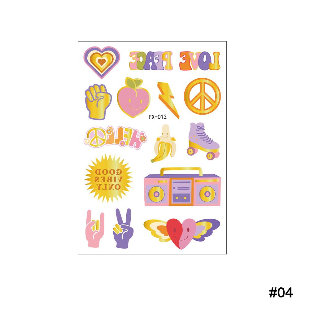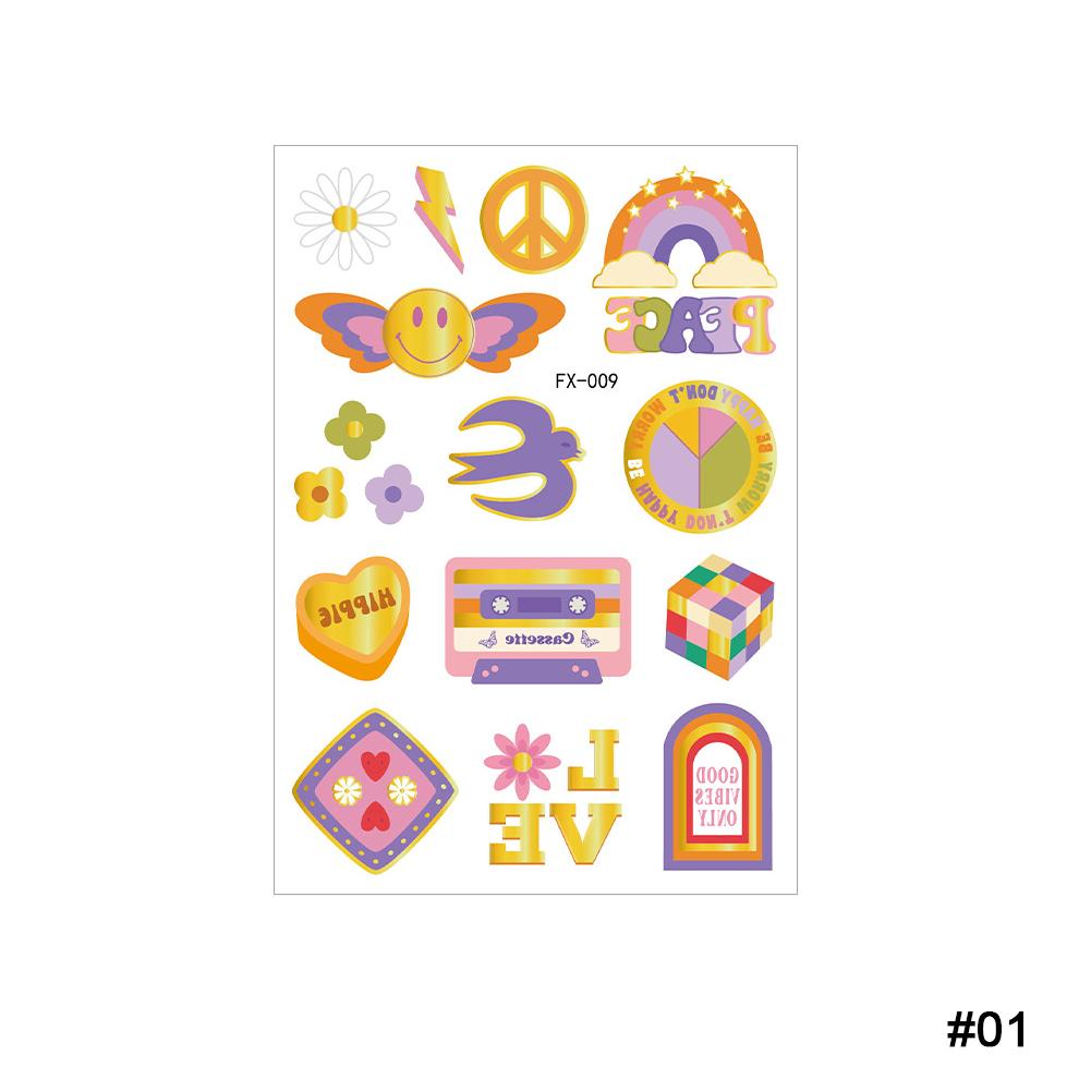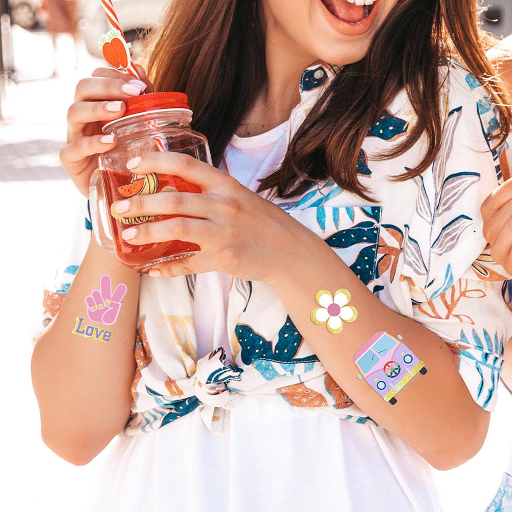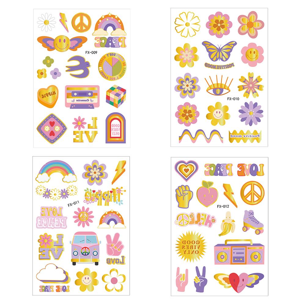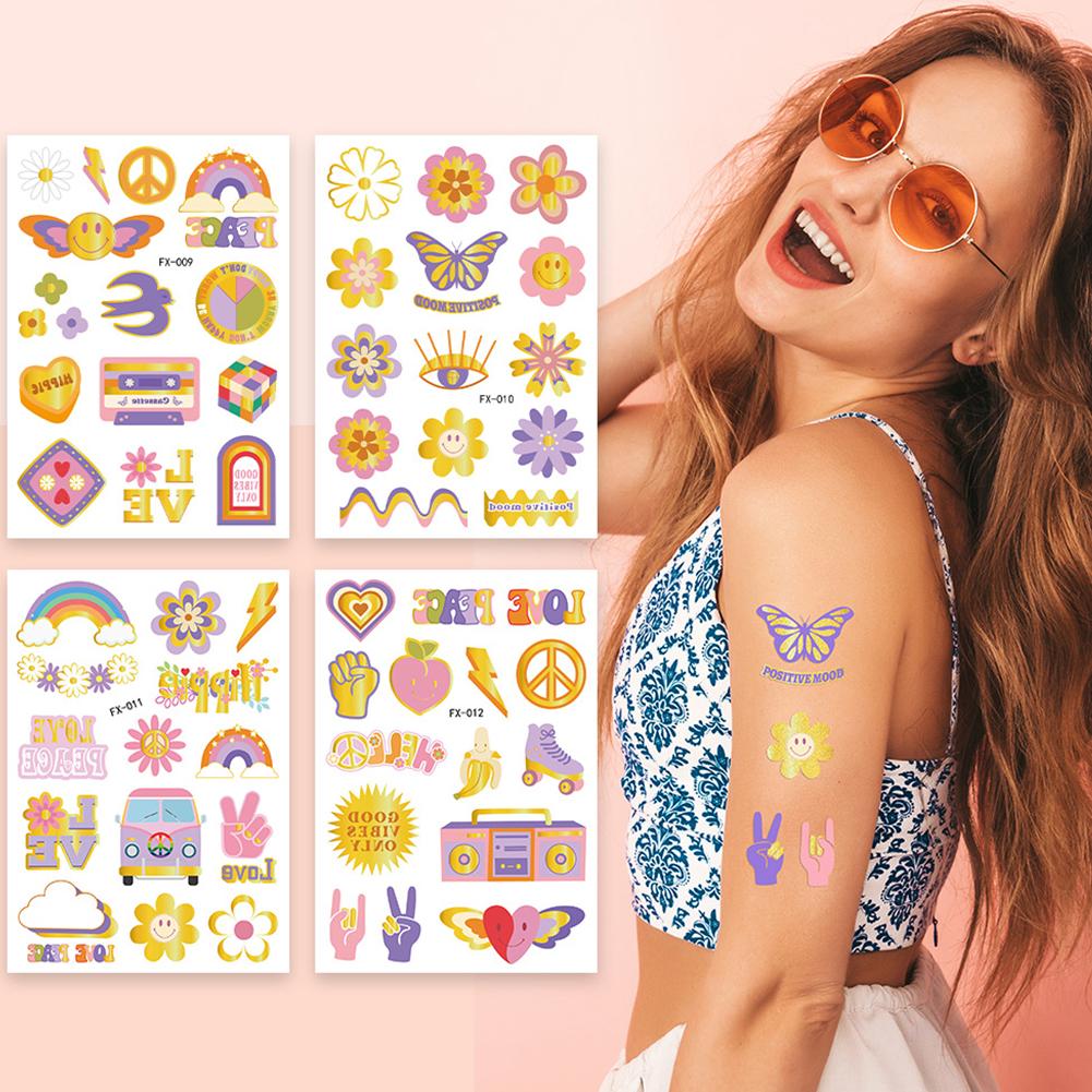 HIPPIE Peace Love Gold Powder Tattoo Stickers Hippie Party Водонепроницаемые потостойкие наклейки-бабочки-цветы