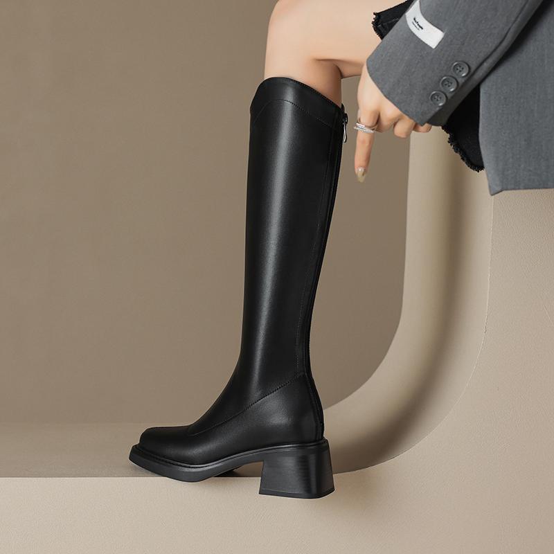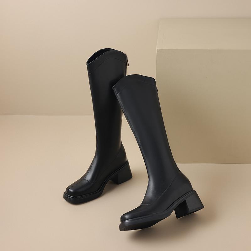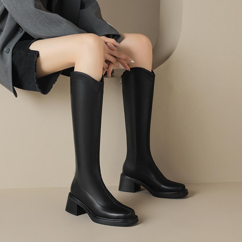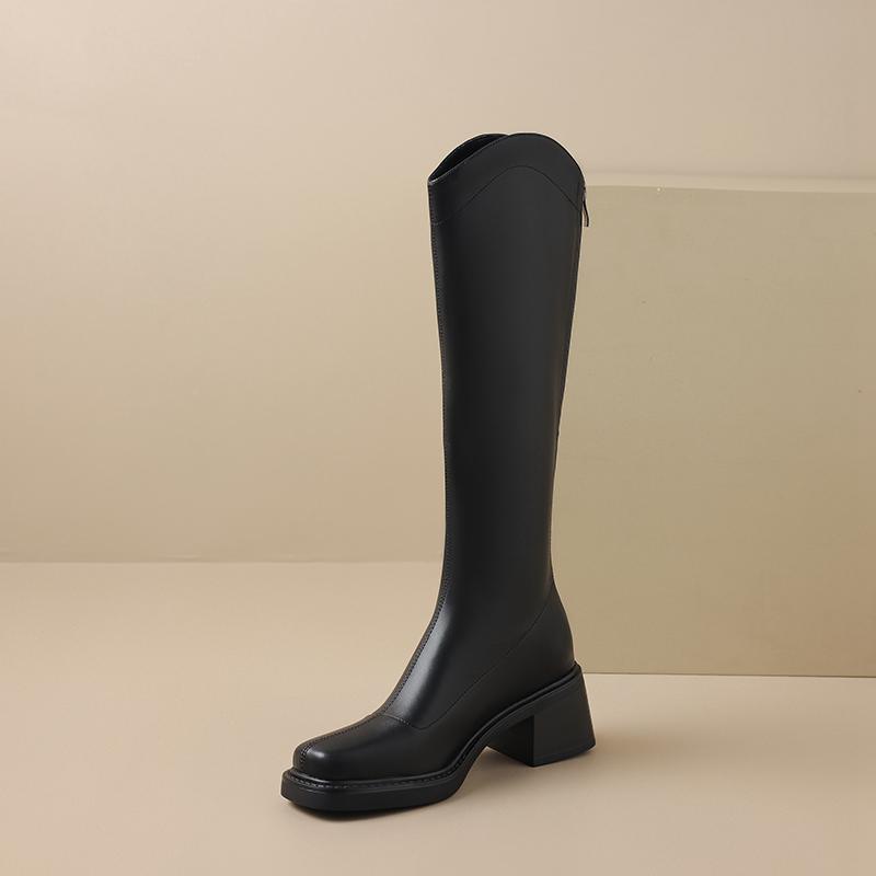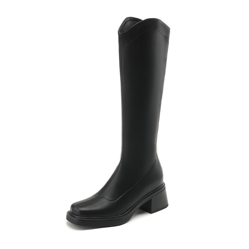 Krazing Pot ПУ осенне-зимняя обувь на толстом высоком каблуке, сапоги для верховой езды с квадратным носком, европейский стиль, сохраняющие тепло, высокие сапоги