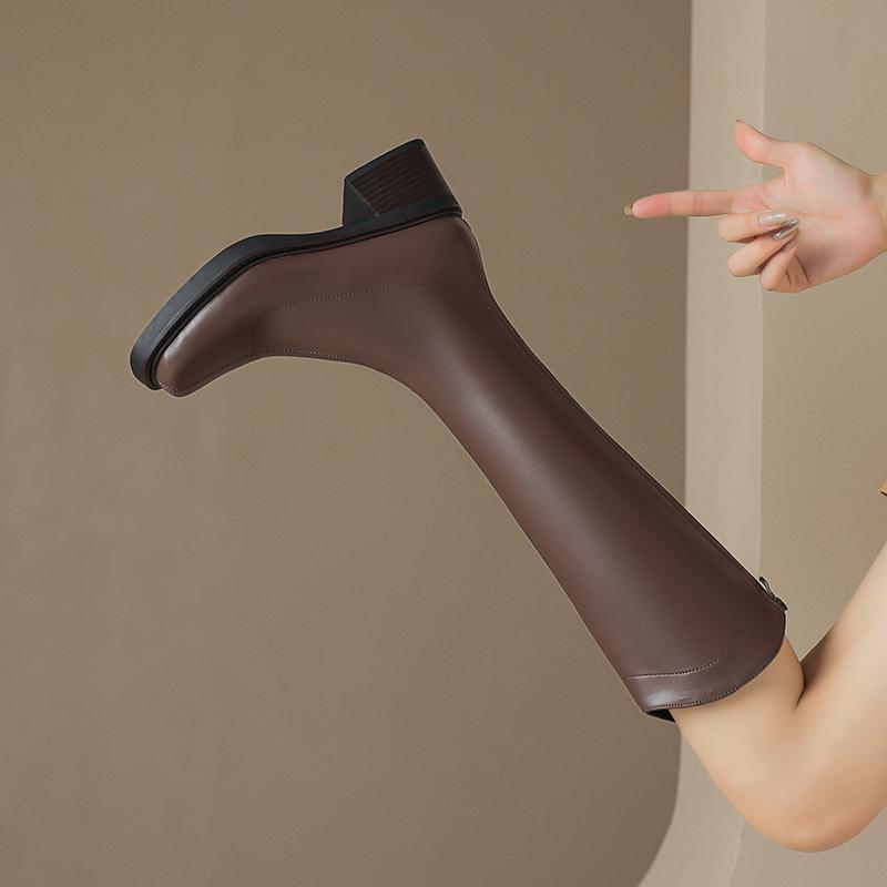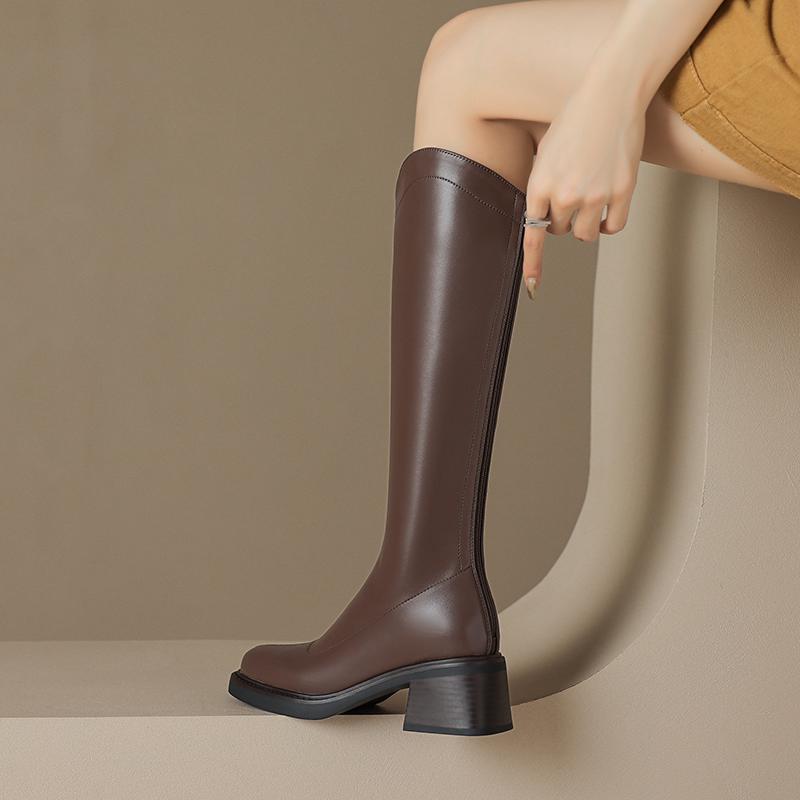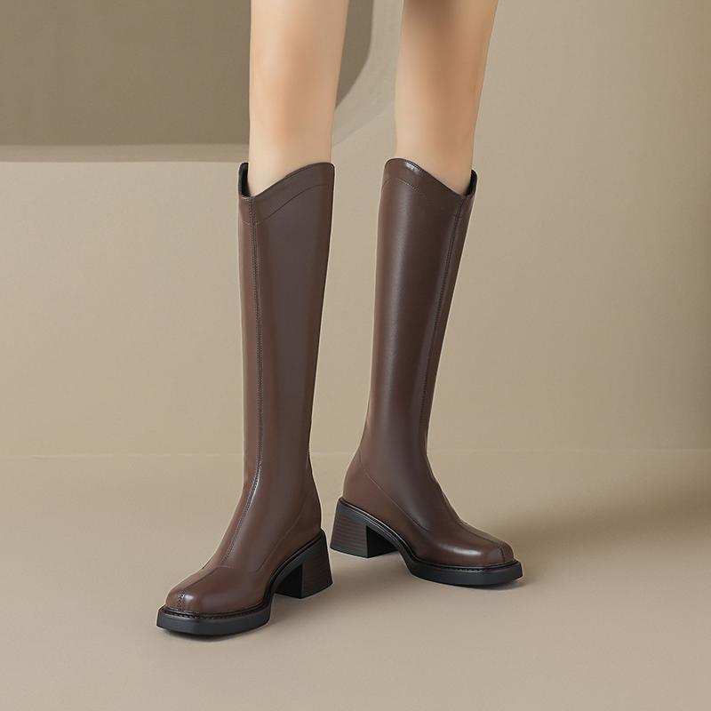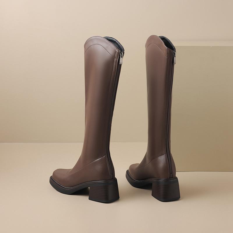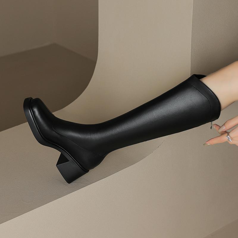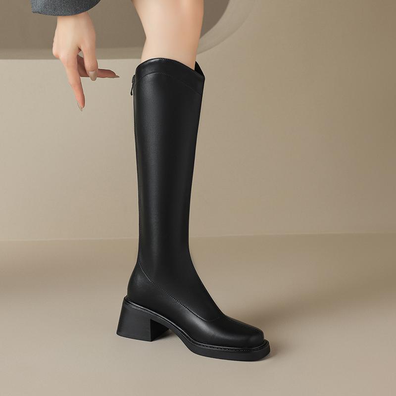 Krazing Pot ПУ осенне-зимняя обувь на толстом высоком каблуке, сапоги для верховой езды с квадратным носком, европейский стиль, сохраняющие тепло, высокие сапоги