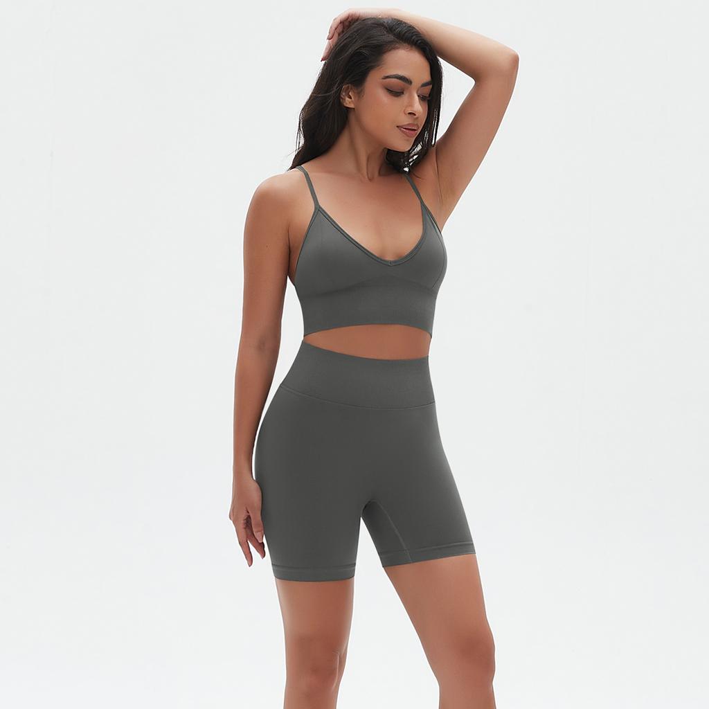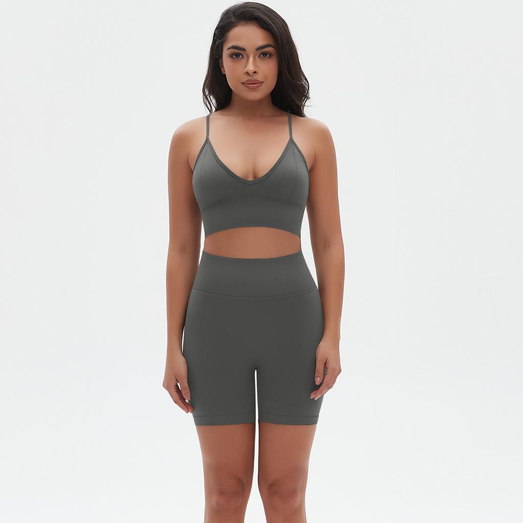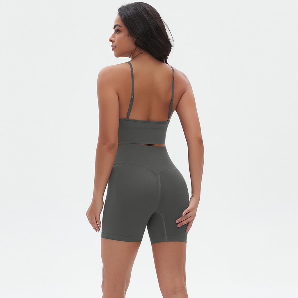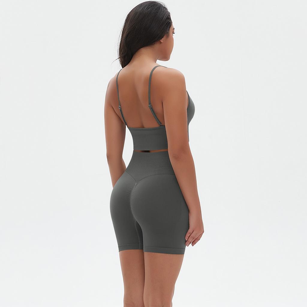 Auroth Женский комплект для йоги с открытой спиной Бесшовный бюстгальтер Тренировочные костюмы Трикотажные шорты для бега Фитнес-комплект