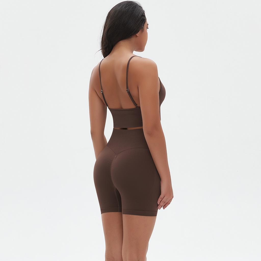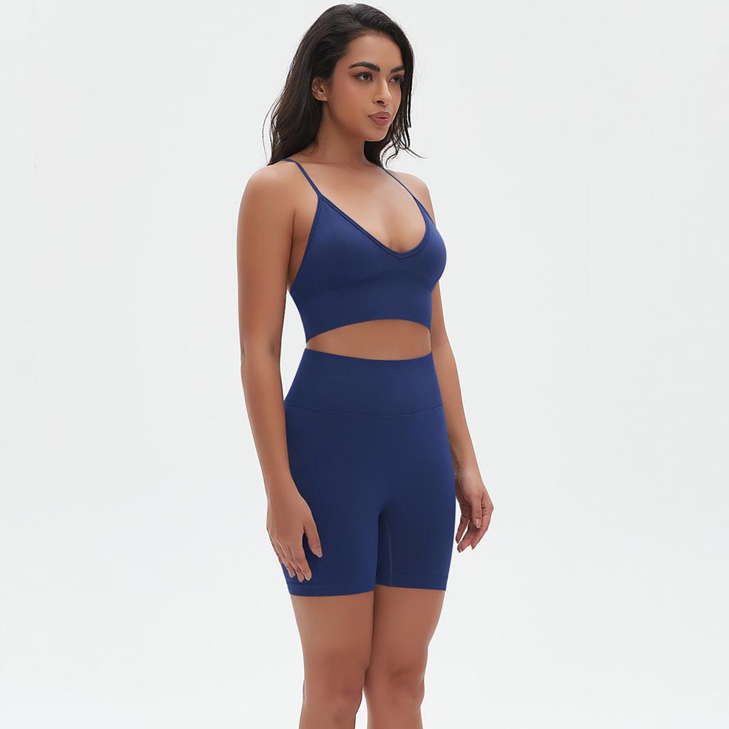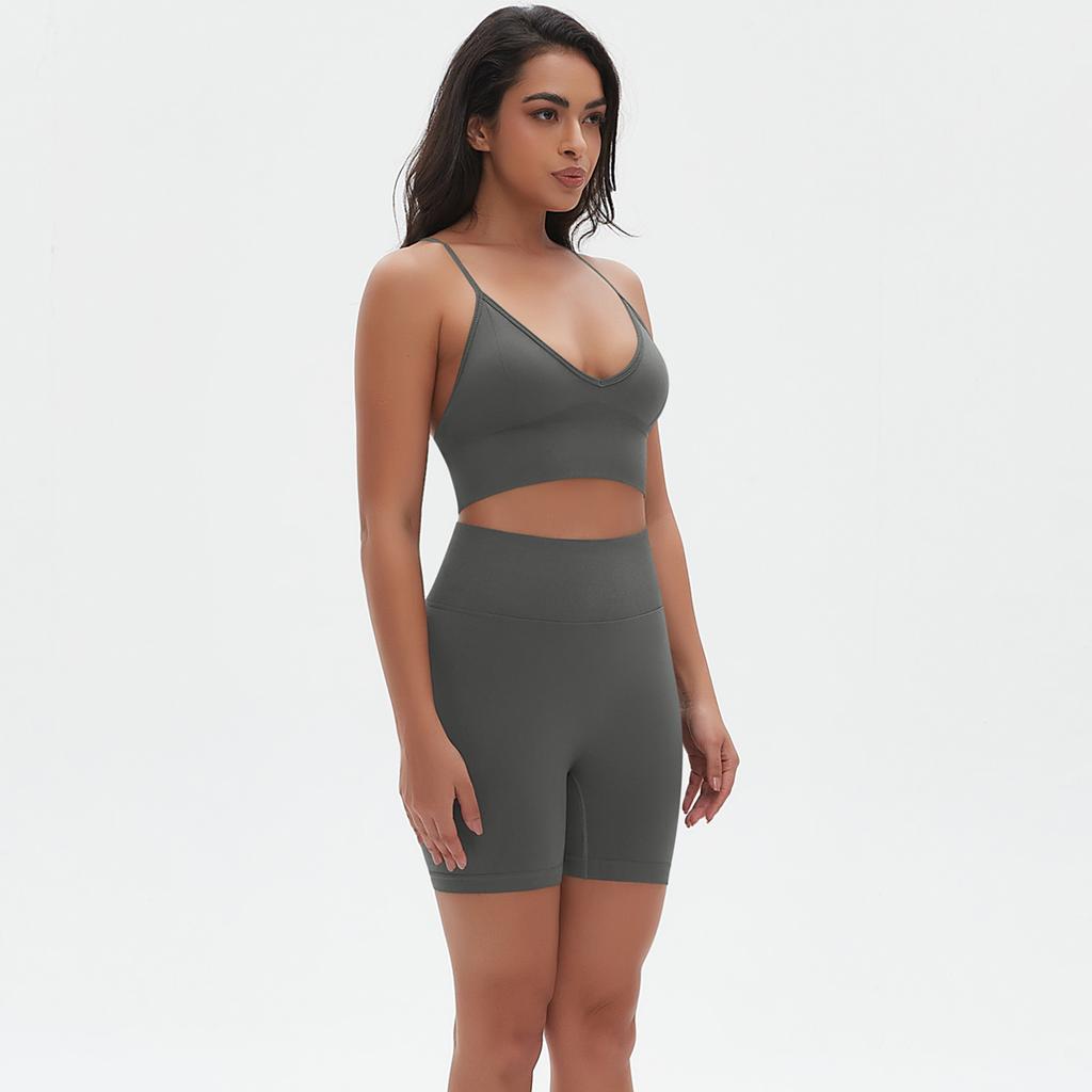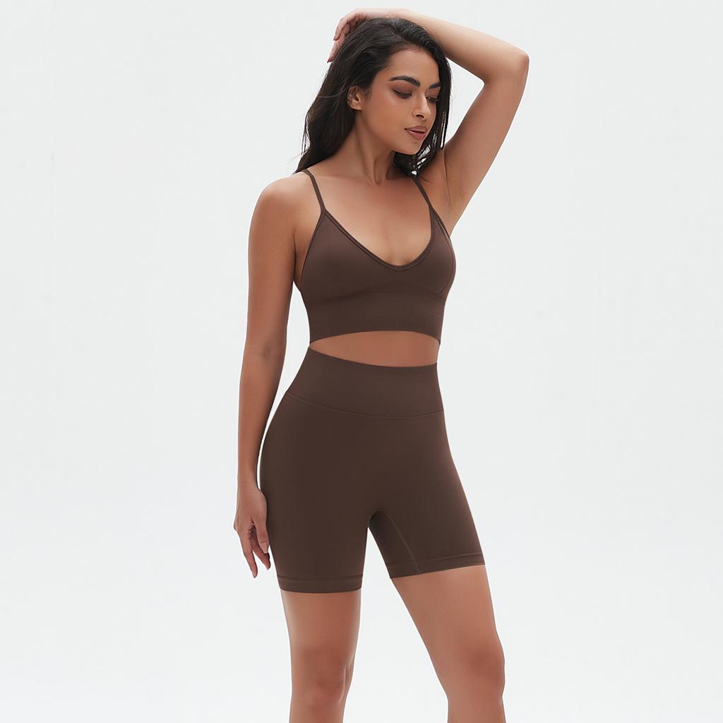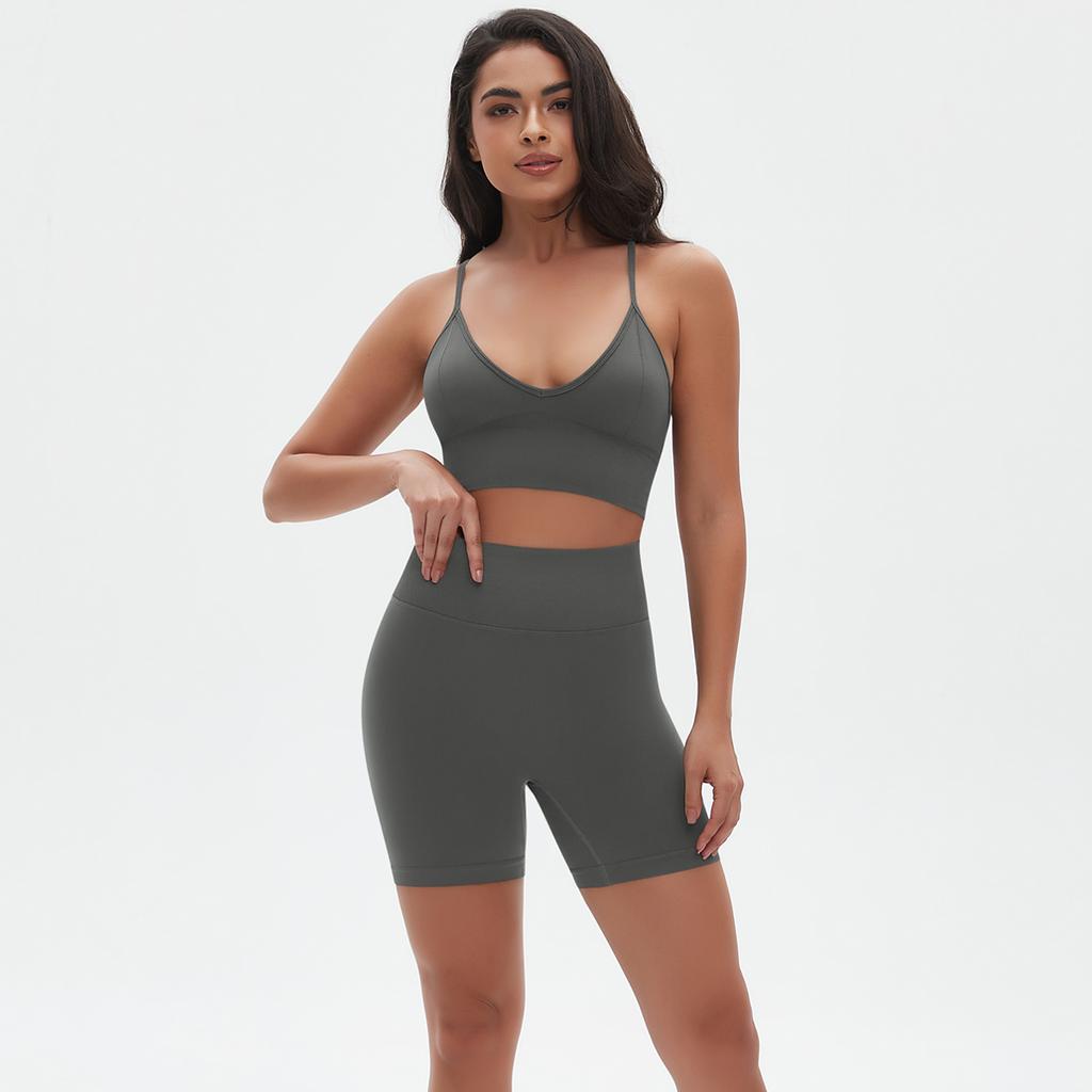 Auroth Женский комплект для йоги с открытой спиной Бесшовный бюстгальтер Тренировочные костюмы Трикотажные шорты для бега Фитнес-комплект