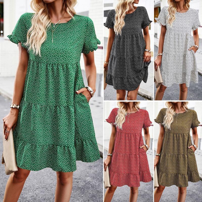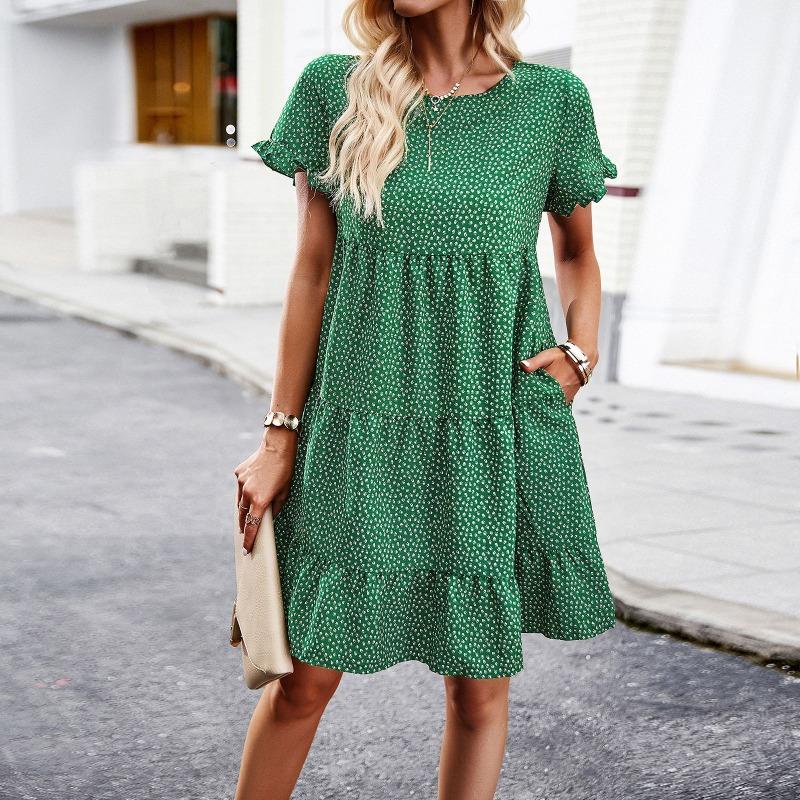 Повседневное платье с принтом в праздничном стиле, юбка с коротким рукавом и круглым вырезом