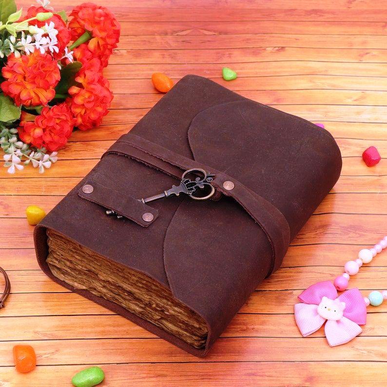 Кожаный блокнот для письма с замком на ремень, старинная бумага с ключом
