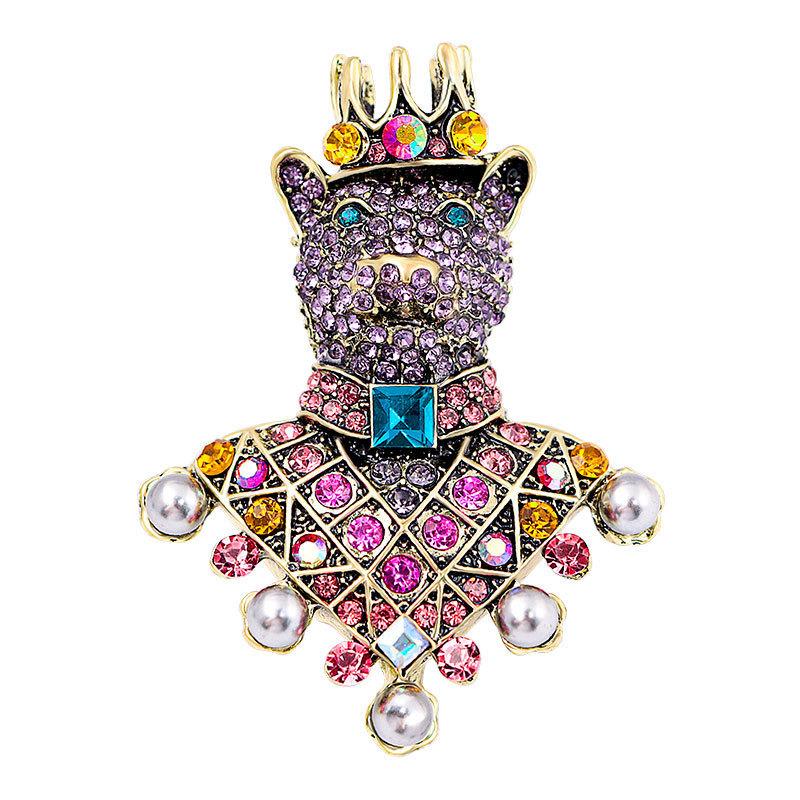 Винтажная полная бриллиантовая корона с медведем в стиле ретро-дворца, тяжелая промышленность, животное, пальто, пряжка, модные ювелирные изделия