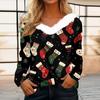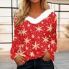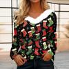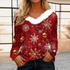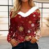 Женская футболка, рождественская рубашка с длинным рукавом, вечерние, рождественский флисовый воротник, топ с v-образным вырезом