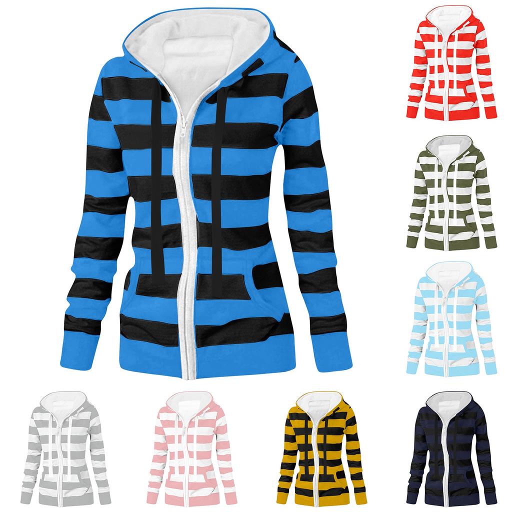 Женская куртка-свитер в полоску с длинным рукавом, свободная спортивная куртка с капюшоном — купить товар онлайн с бесплатной доставкой до всему миру!