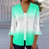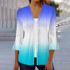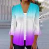 Женская мода свободный повседневный принт с рукавом три четверти рубашка на пуговицах кардиган топ