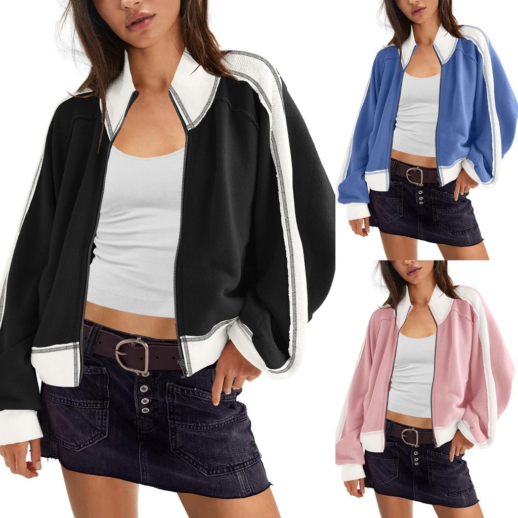 Женская куртка с длинным рукавом на молнии, толстовка, повседневная верхняя одежда, пальто с карманами — купить товар онлайн с бесплатной доставкой по всему миру!