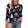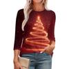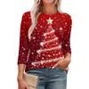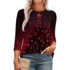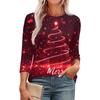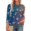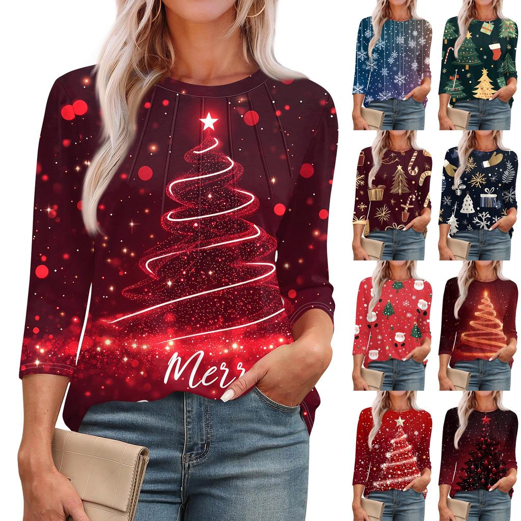 Женская модная футболка с круглым вырезом и рукавом 3/4 с рождественскими принтами, повседневная базовая плиссированная футболка-пуловер