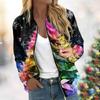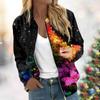 Женская легкая короткая куртка с длинными рукавами на молнии с принтом, повседневная стеганая куртка с карманами, рождественская