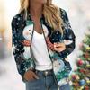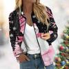 Женская легкая короткая куртка с длинными рукавами на молнии с принтом, повседневная стеганая куртка с карманами, рождественская