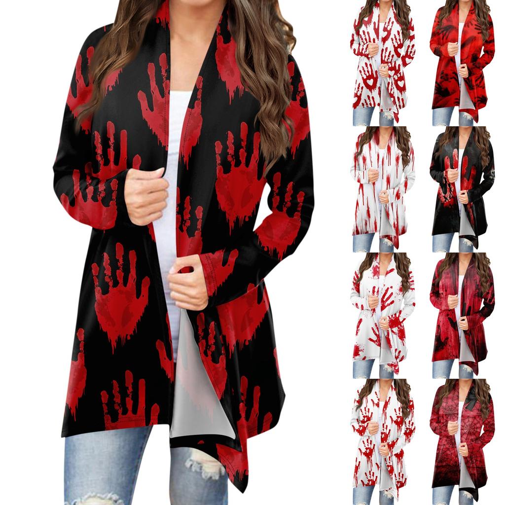 Женский модный повседневный кардиган средней длины с принтом на Хэллоуин, куртка, пальто — купить товар онлайн с бесплатной доставкой до всему миру!