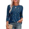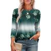 Женская модная футболка с круглым вырезом и рукавом 3/4 с принтом, повседневная, базовая, плиссированная, пуловер