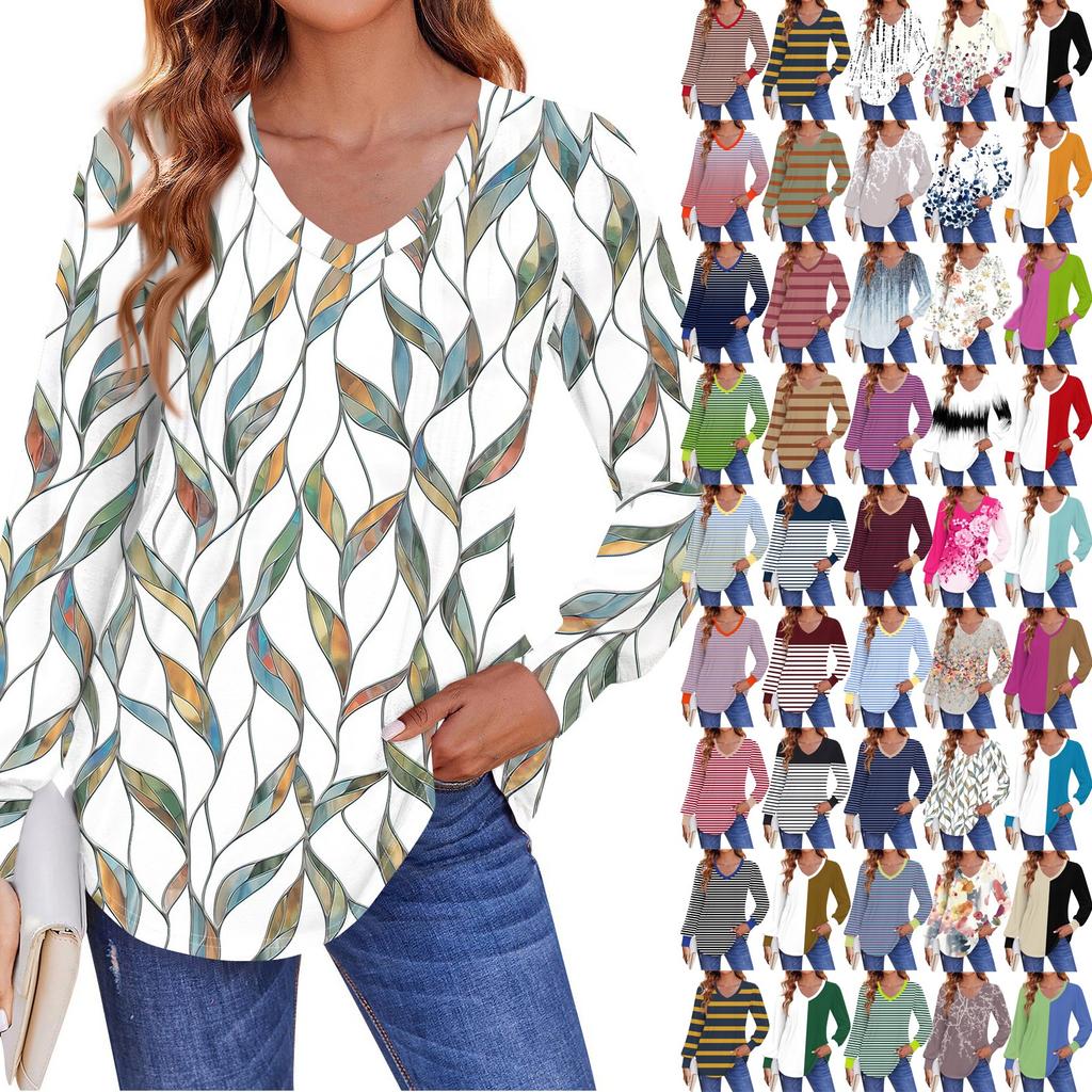 Женские рубашки с длинным рукавом-фонариком, плиссированные туники с V-образным вырезом, осенние топы с длинным рукавом и принтом — купить товар онлайн с бесплатной доставкой по всему миру!