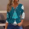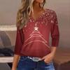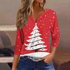 Жен. Футболка Футболка С принтом Пуговицы Рукав 3/4 Повседневные Выходные Мода Классический V-образный вырез Обычный Топ
