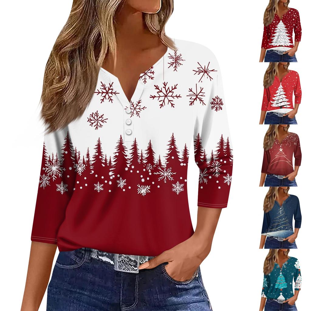 Жен. Футболка Футболка С принтом Пуговицы Рукав 3/4 Повседневные Выходные Мода Классический V-образный вырез Обычный Топ — купить товар онлайн с бесплатной доставкой по всему миру!