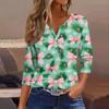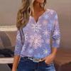 Жен. Футболка Футболка С принтом Пуговицы Рукав 3/4 Повседневные Выходные Мода Классический V-образный вырез Обычный Топ