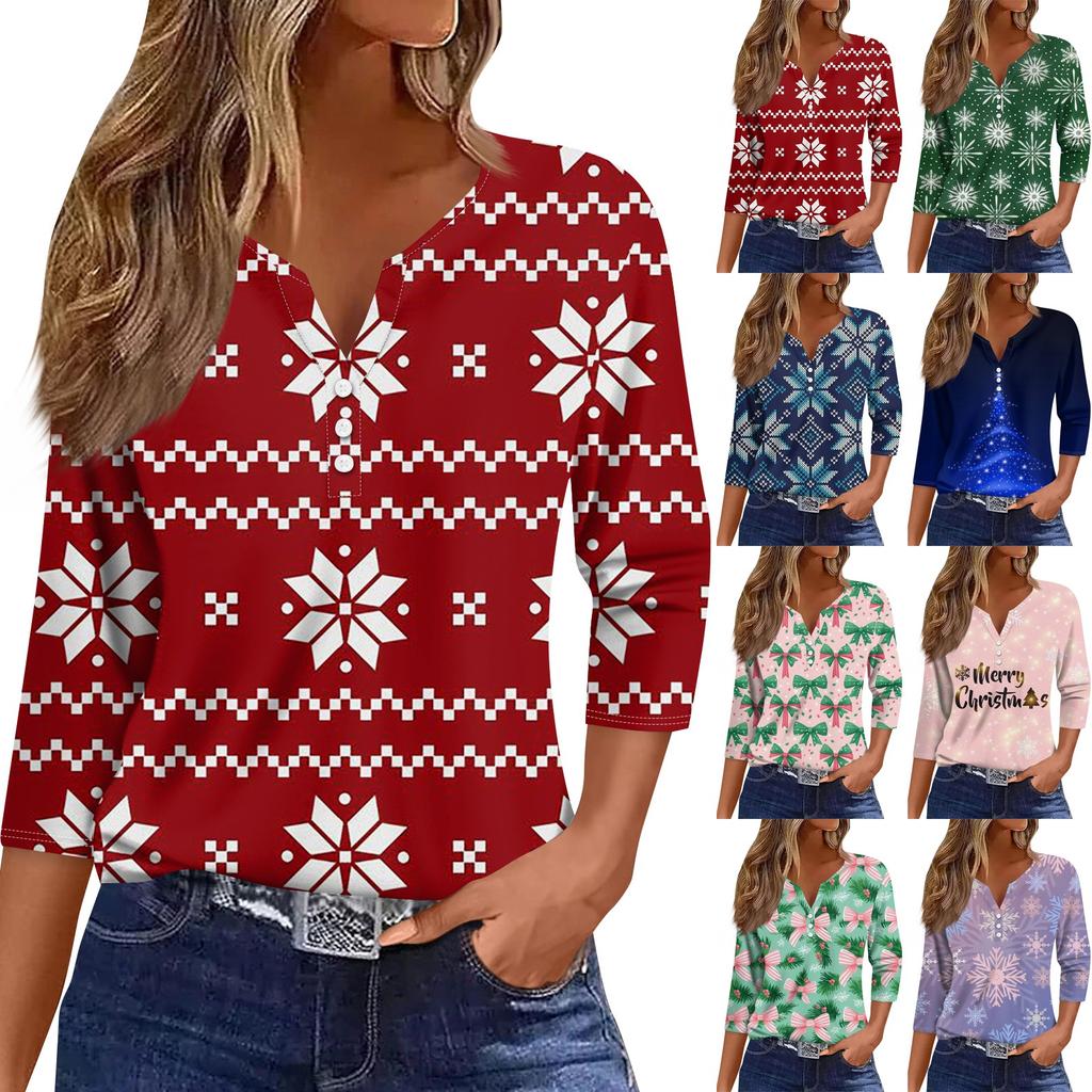 Жен. Футболка Футболка С принтом Пуговицы Рукав 3/4 Повседневные Выходные Мода Классический V-образный вырез Обычный Топ — купить товар онлайн с бесплатной доставкой по всему миру!