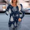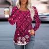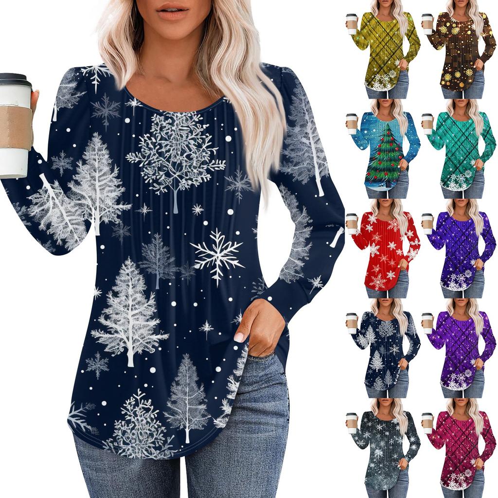 Женская повседневная и модная принтованная футболка с круглым вырезом и длинными рукавами, плиссированная футболка на Рождество