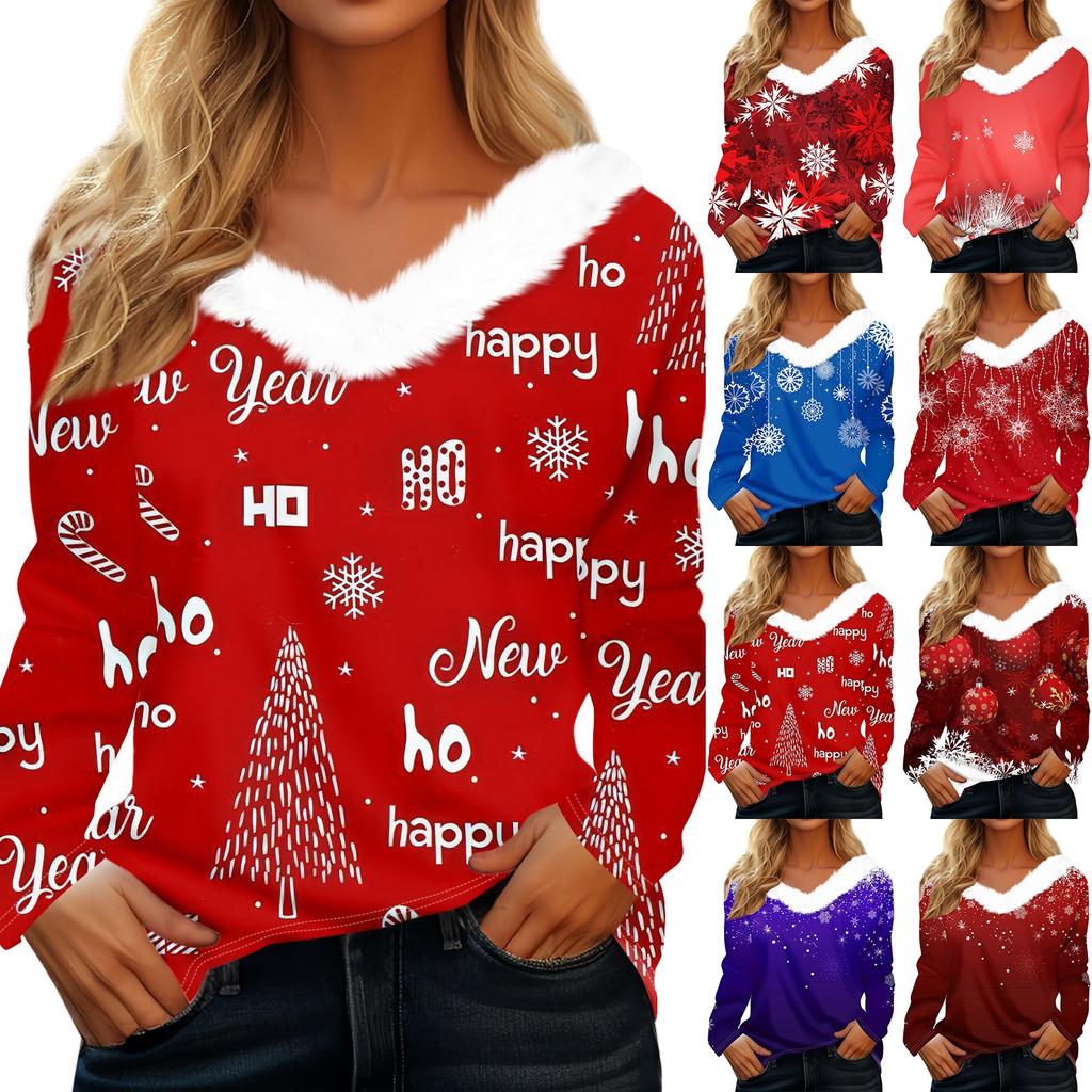 Рубашки с длинным рукавом для женщин Милые топы Рождественские принты Футболки Блузки Повседневные топы больших размеров Базовые топы Пуловеры — купить товар онлайн с бесплатной доставкой по всему миру!