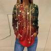 Футболки для женщин, осенние повседневные рубашки с длинными рукавами, толстовка с ретро-принтом, топ для рождественской вечеринки, пуловер