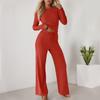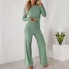 Женская спортивная одежда, повседневный короткий топ, длинные брюки, однотонный комплект из двух предметов, комплект с длинными рукавами