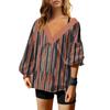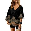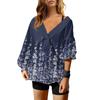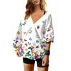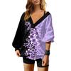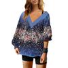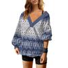 Женская мода ретро принтованный V-образный вырез длинный рукав свободный пуловер свитшот топ