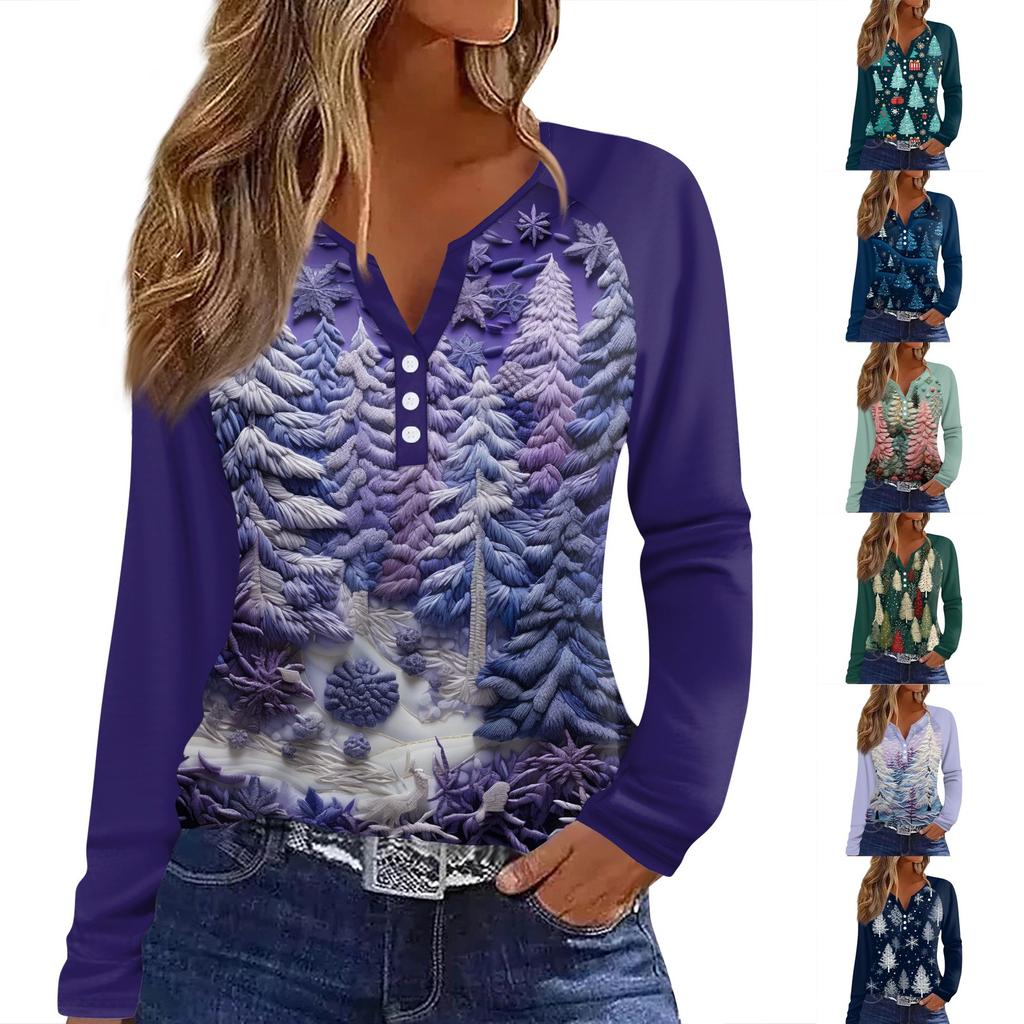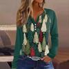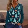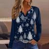Женская мода повседневная рождественская печать V-образный вырез рукава реглан с декоративными пуговицами длинный рукав футболка топ