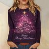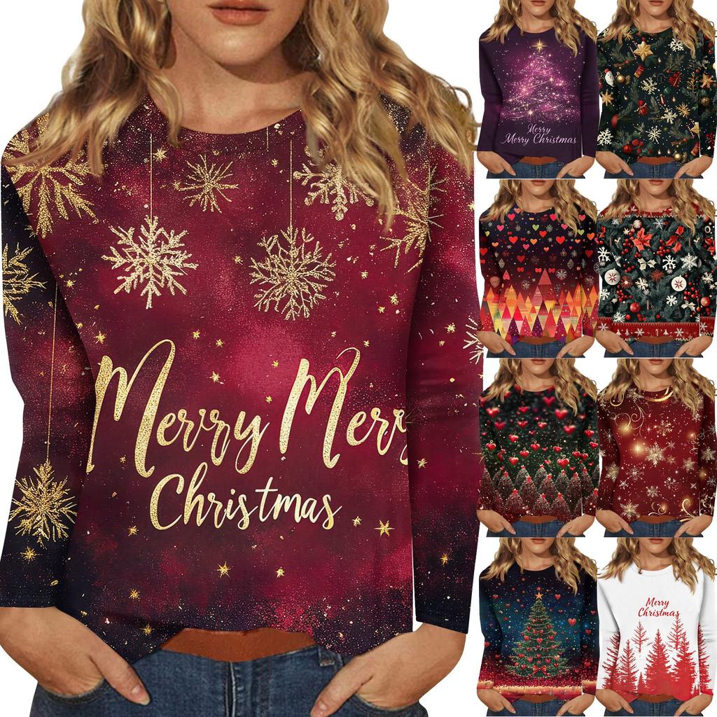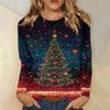 Женская мода повседневный рождественский принт круглый вырез длинный рукав пуловер топ