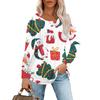 Женская повседневная футболка с круглым вырезом и длинными рукавами с рождественским принтом и складками
