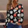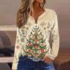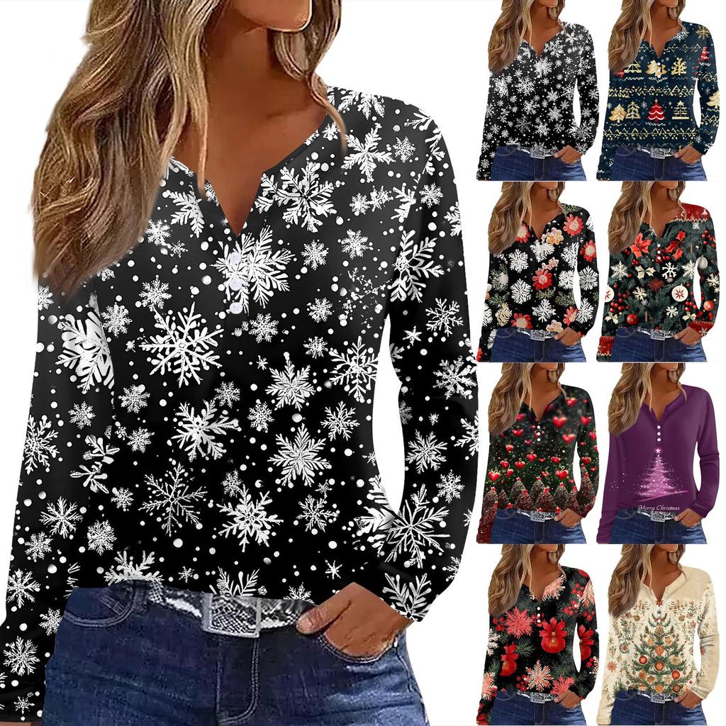 Женская футболка с рождественским принтом на пуговицах с длинным рукавом, повседневная, выходного дня, модная, базовая, с V-образным вырезом, обычная
